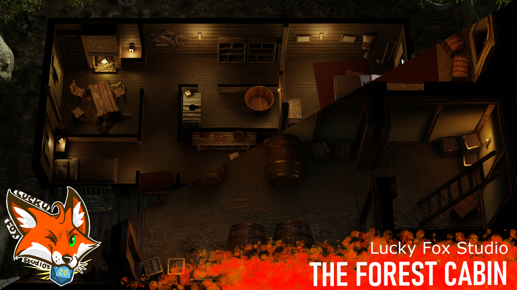 This pack contains the materials you need for a speedy forest cabin scene set up. Just drop your tokens in and play!